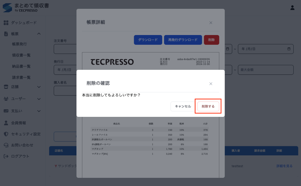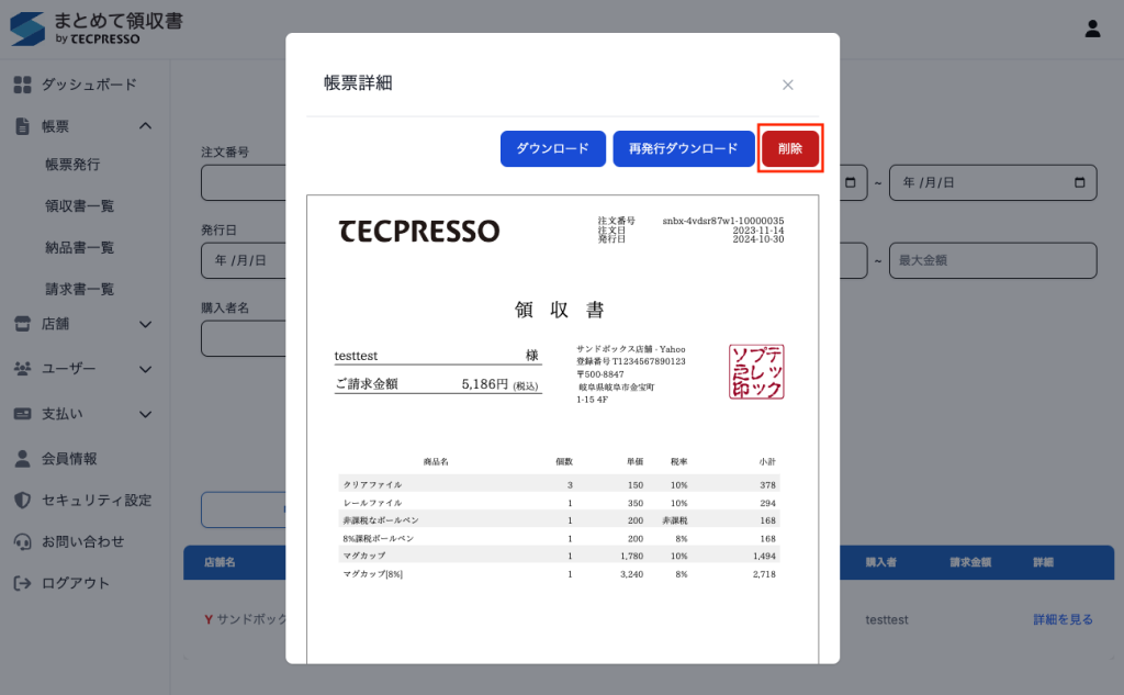 該当の領収書を削除した後は、改めて新規発行することができます。